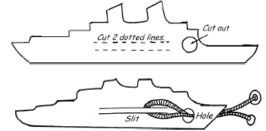 Push toothpicks through the tops and bottoms of each sail, see illustration.
