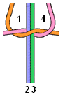 Bring strand 4 under strands 2 & 3, then up through the loop created by strand 1. Tighten |